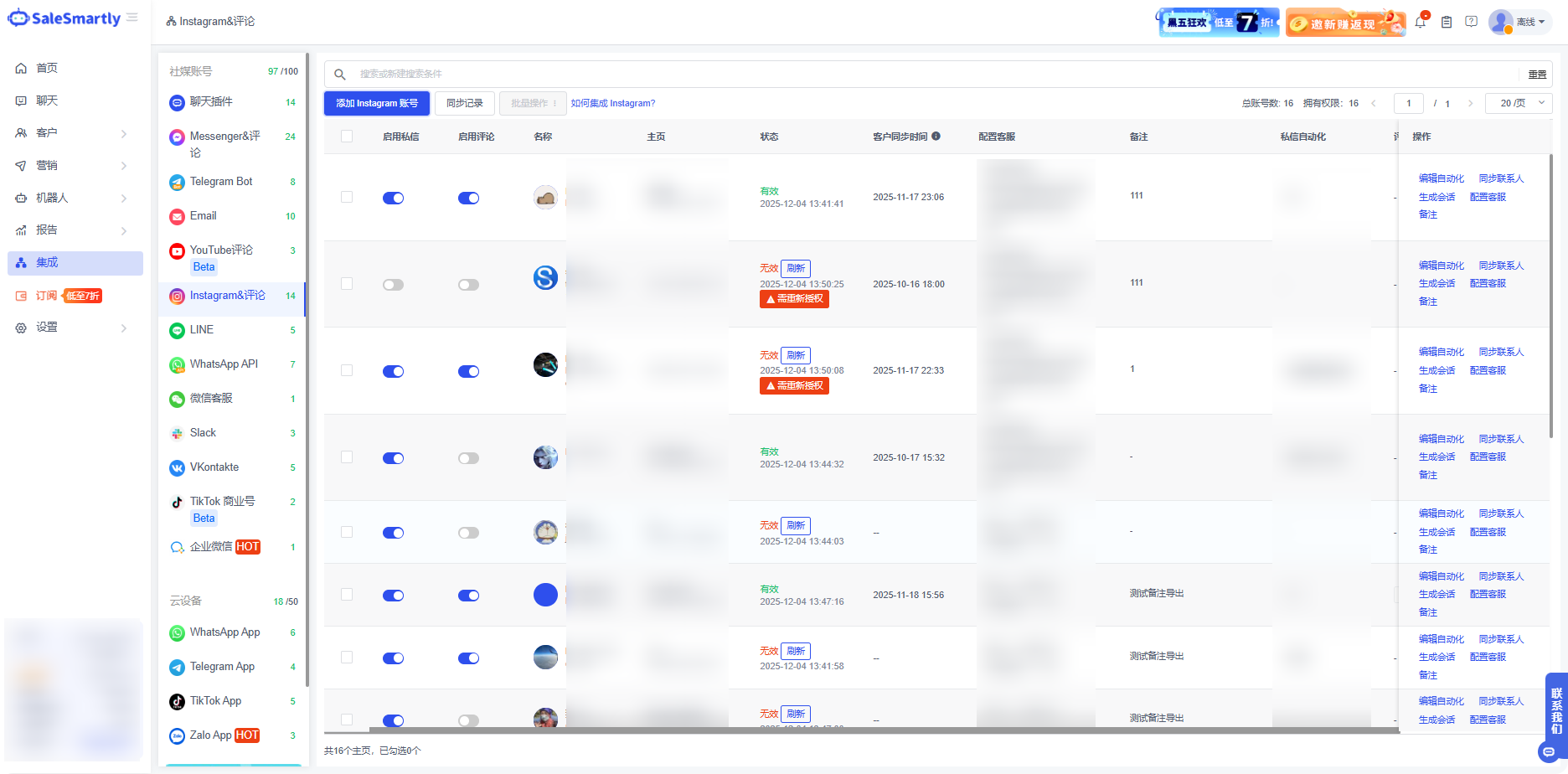 ① 打开 SaleSmartly,并将你的 Instagram 账号集成入内