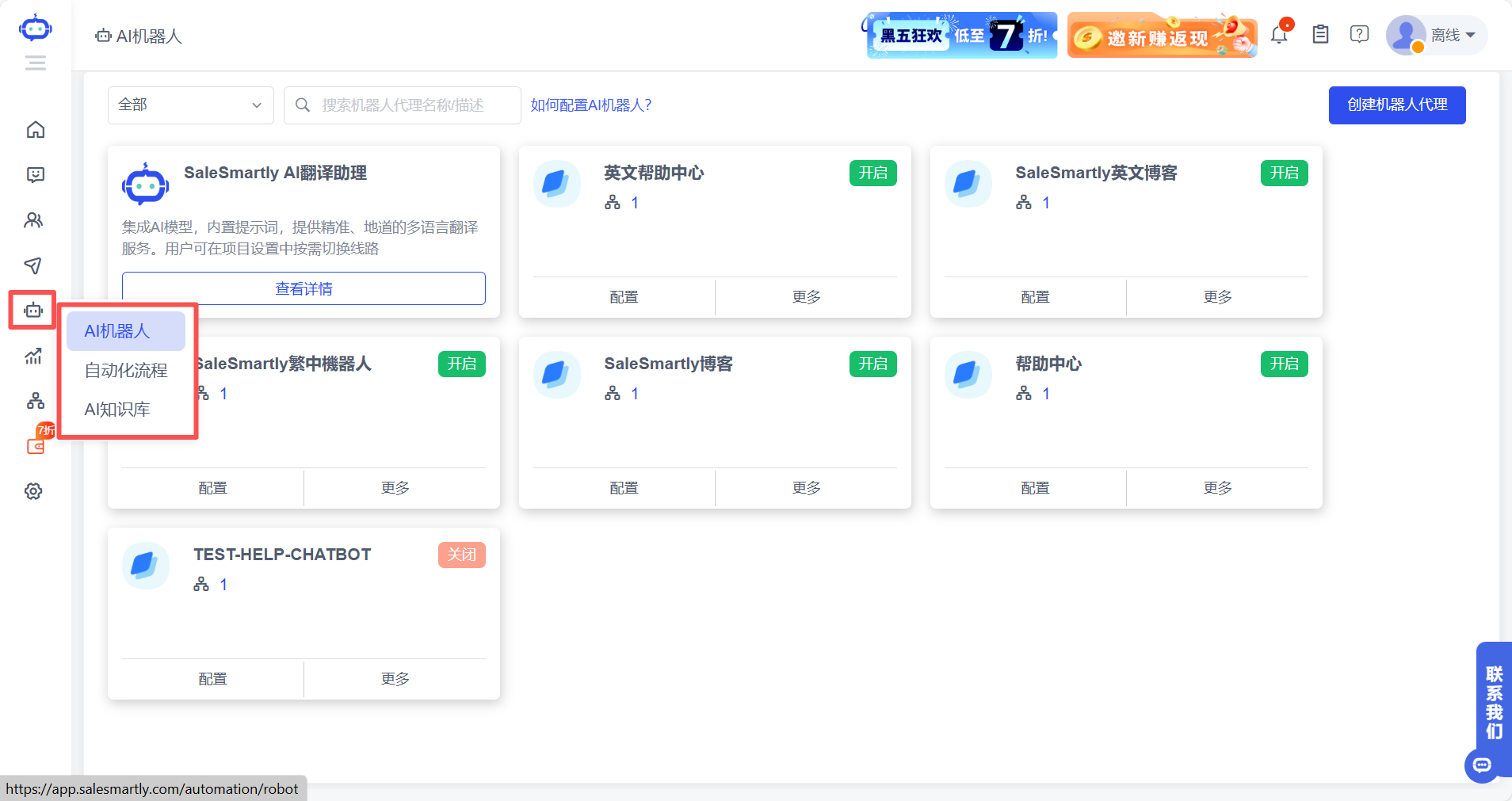 在 SaleSmartly 后台点击【机器人】>【自动化流程】>【创建流程】>即可添加成功。