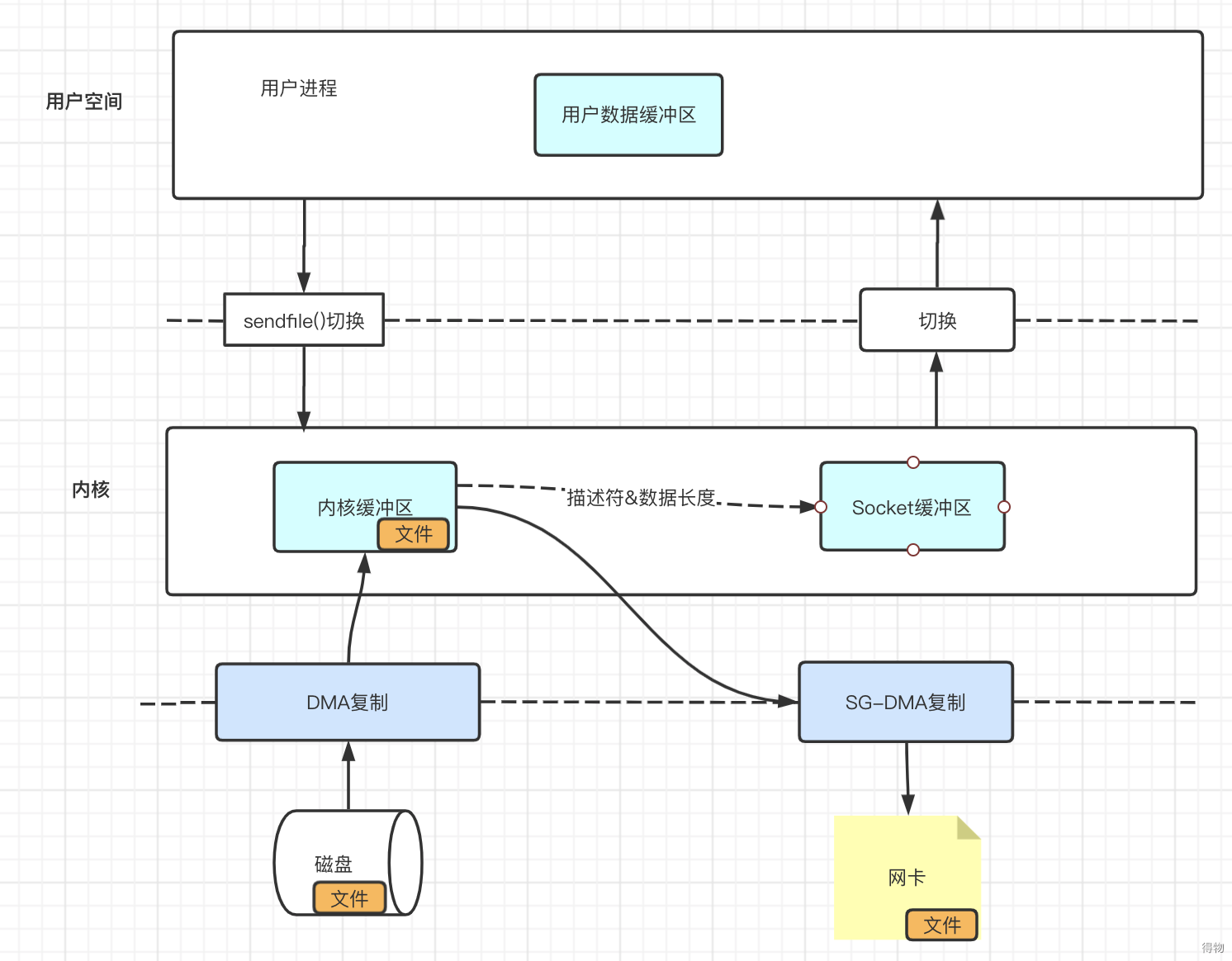 sendfile 将数据读取到内核缓冲区之后,网卡通过 SG-DMA 控制器将数据复制过来