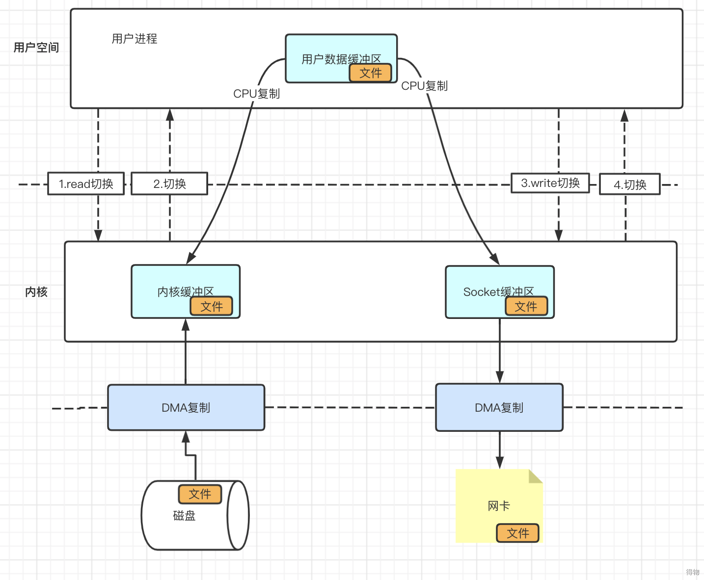 以上流程中,涉及到数据的拷贝都需要 CPU 来完成,CPU 是非常珍贵的资源,CPU 在拷贝数据的时候,无法做其他的事情,如果传输的数据非常大,那么 CPU 一直在拷贝数据,无法执行其他工作,代价非常大。