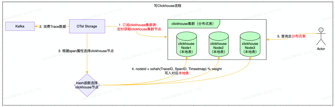 - 通过Hash函数选择对应的ClickHouse节点,然后批量写ClickHouse的本地表。