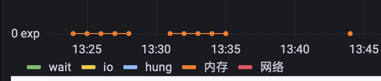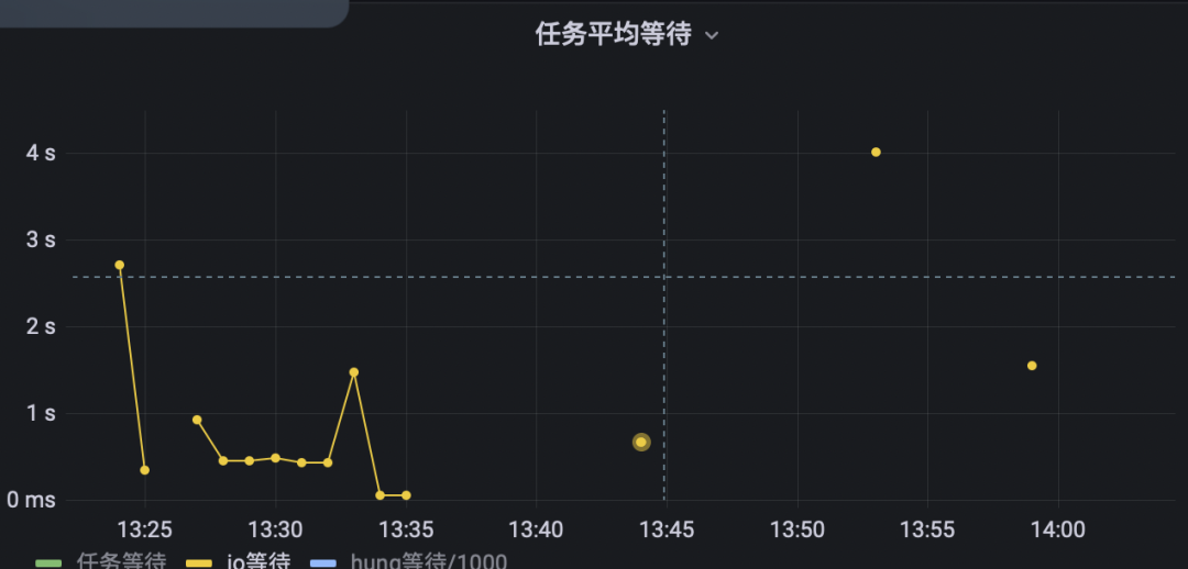 为了更进一步知道根因所在,我们又去观察了对应的 io夯、调度(任务等待)、 夯住(应用进程锁)、用户态内存等待、网络 (系统 5状态分类左图) (这里第一步已经排除了“网络”故障所以这里做了删除线处理),可以看到排查到io等待时间过长(下图)