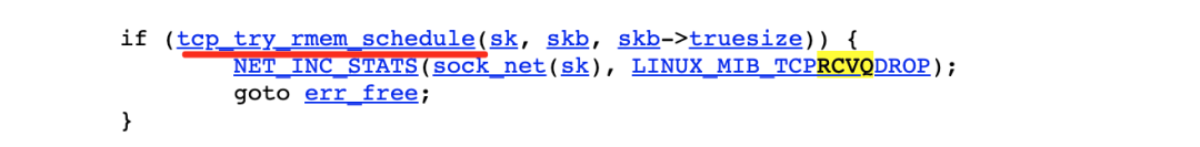 上面的逻辑简单叙述:TCP的核心预分配缓存额度函数为tcp_try_rmem_schedule,如果无法分配缓存额度,将首先调用tcp_prune_queue函数尝试合并sk_receive_queue中的数据包skb以减少空间占用,如果空间仍然不足,最后调用tcp_prune_ofo_queue函数清理乱序数据包队列 (out_of_order_queue)。简单说:如果内存分配失败,对应drop计数就会递增