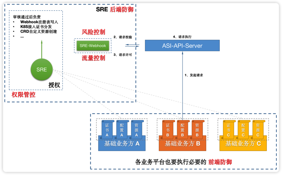 不同平台方、业务方一般在自己的前端或者后端都有对应的逻辑进行风险控制。但是也搞不好业务方在逻辑上存在Bug或者不够完善的地方,因此在最基础的底层上,需要有个SRE的WebHook对所有请求进行拦截校验兜底。