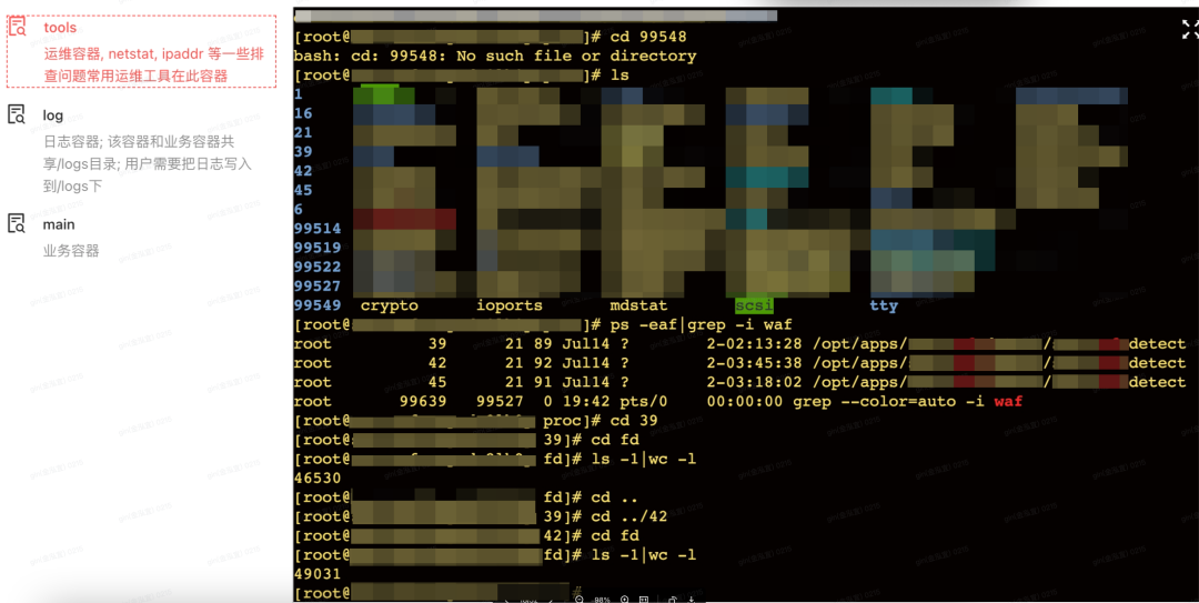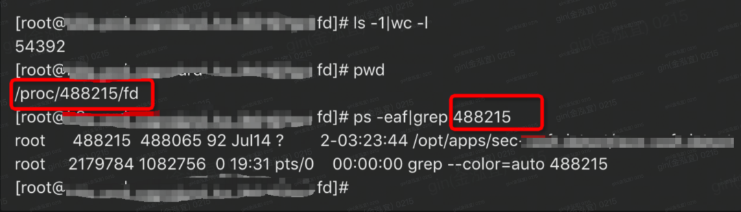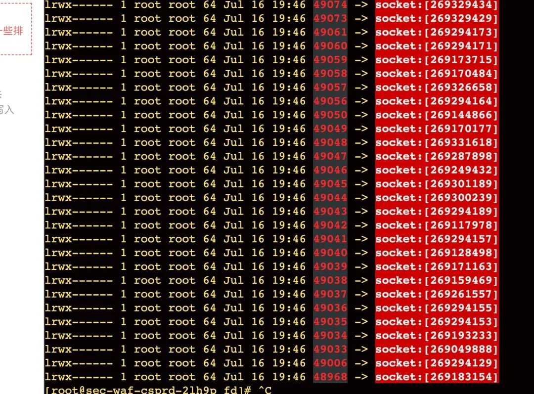 然后我们怎么找到是谁呢?通常情况下可以这么理解,一个 soket 就是一个 fd (句柄),对应soket 大必然fd 也大!(因为linux 一切皆文件)随后我们用了 for 循环查找对应的/proc 下的文件数量,结果如下:
