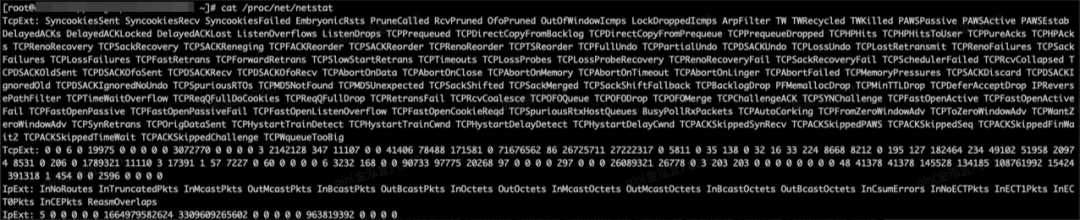 所以第一步就是完成内核指标罗列范围。我们对以往的故障和反馈分析来看,网络故障发生较为频繁,所以范围圈定为宿主机网络指标为主;网络指标在系统中主要由/proc/net/netstat提供,所以我们罗列了他所提供的所有指标;(如图是netstat的所有指标)