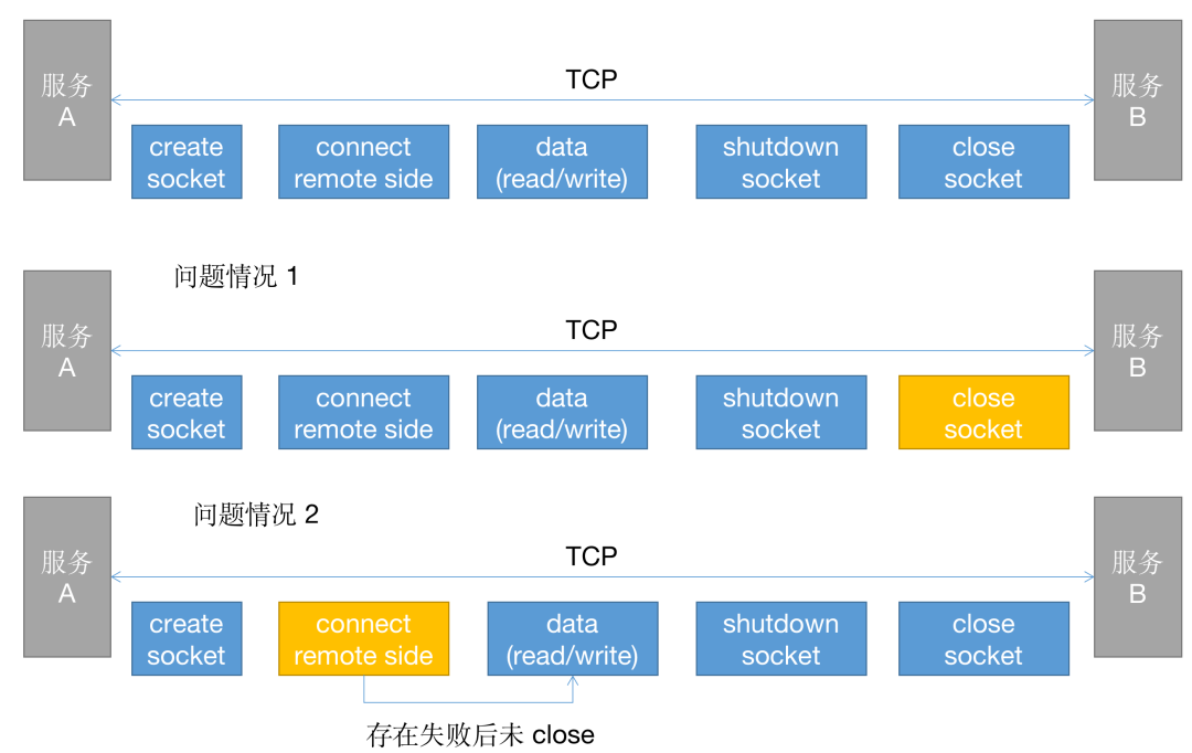 通常出现这种情况的原因有以下两种:1、应用没有正确close他的socket进程 2、没有处理异常情况下的socket🔗
