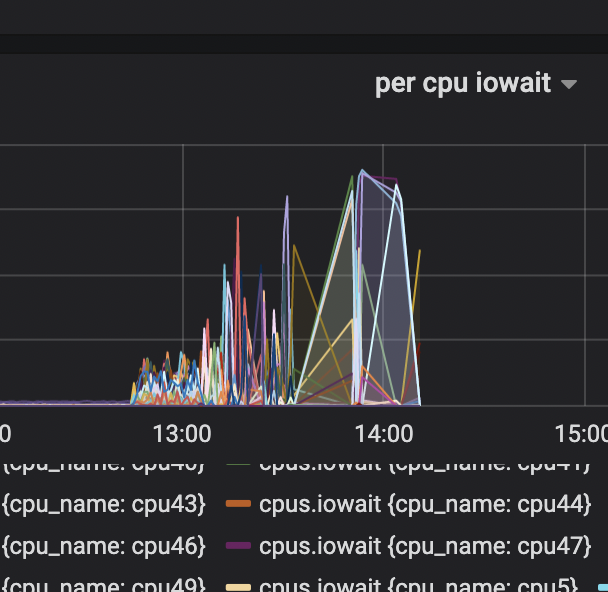 IO平均等待时间在秒级以上,远超了正常范围,故开始排查percpu iowait 状况。经过一系列的操作最终我们使用sls 导入tidb 的方法数据做了一个可视化;