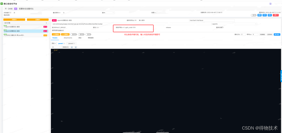 测试场景:拆分前和拆分后的代码相同接口需要在相同配置不同染色环境下返回response全量json结果对比的场景。
