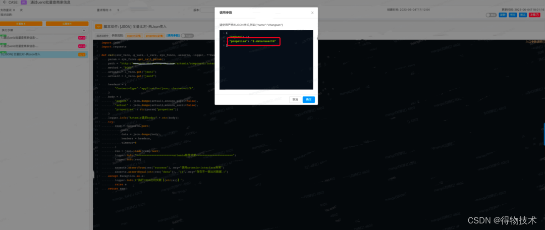 可用组件的"propeties": "$.data=userId"(或者"propeties": "$.data=merchantId")json里面的list先排序再对比,这样就规避了list返回顺序不一致的情况:
