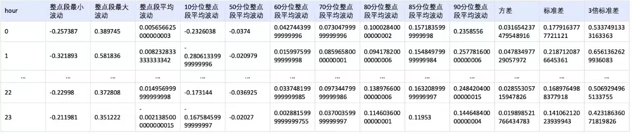 方案二: 按照天维度,收集一段时间内,同一天相邻整点指标波动数据找规律,比如每天上午9点到10点的波动数据,然后分别通过一系列的数学分布方法进行数据统计,从而希望找一个相对稳定的波动区间;