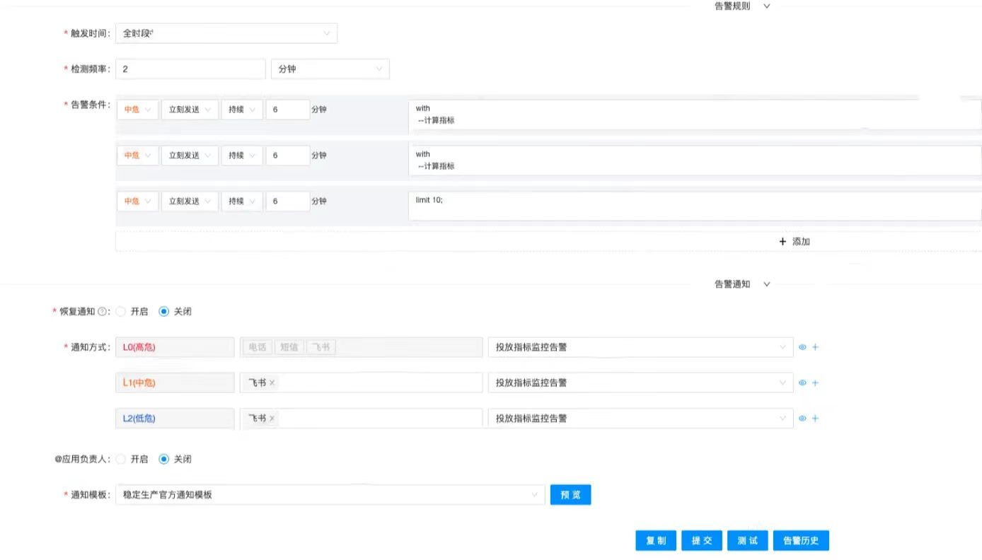 方案1到5,都尝试过一遍,每个方案场景数据通过最大值、最小值、平均值、各百分位分布、方差、标准差等统计出来的数据分析,很难找到一个相当稳定的波动规律,也无法框定指标具体的阀值区间,实际演练过程,如果设置的波动告警阀值过大,真实生产上业务数据波动异常时,无法及时告警发现;设置过小,将导致告警频繁,对其准确性、有效性可能存在质疑,而且,实时投放的核心指标有几十个,每个指标对应的健康阀值都不一样,要收集、分析成本非常高,从演练的效果上看,也不是很明显。
