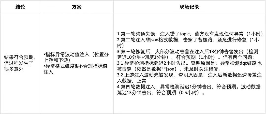 如不符合预期,未在15min内发现指标波动异常,红军需及时定位、跟进问题,并在修复后,沟通后续演练验证修复结果。