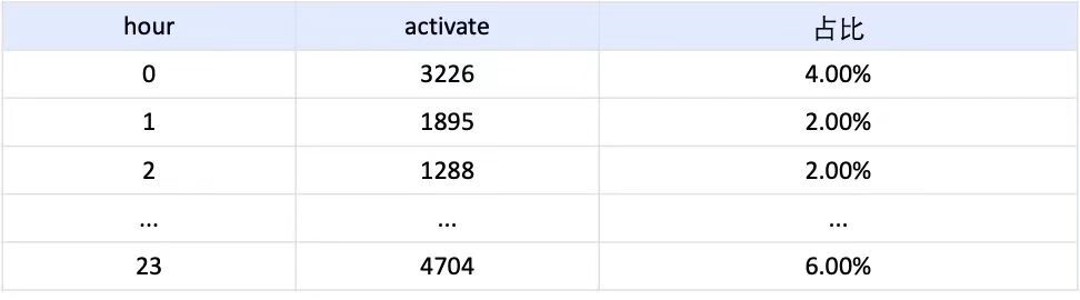 方案一: 按照天维度,收集最近一段时间,同一天每个整点设备激活数,占当天大盘占比,统计出最小值、最大值,作为该指标的健康波动阀值;