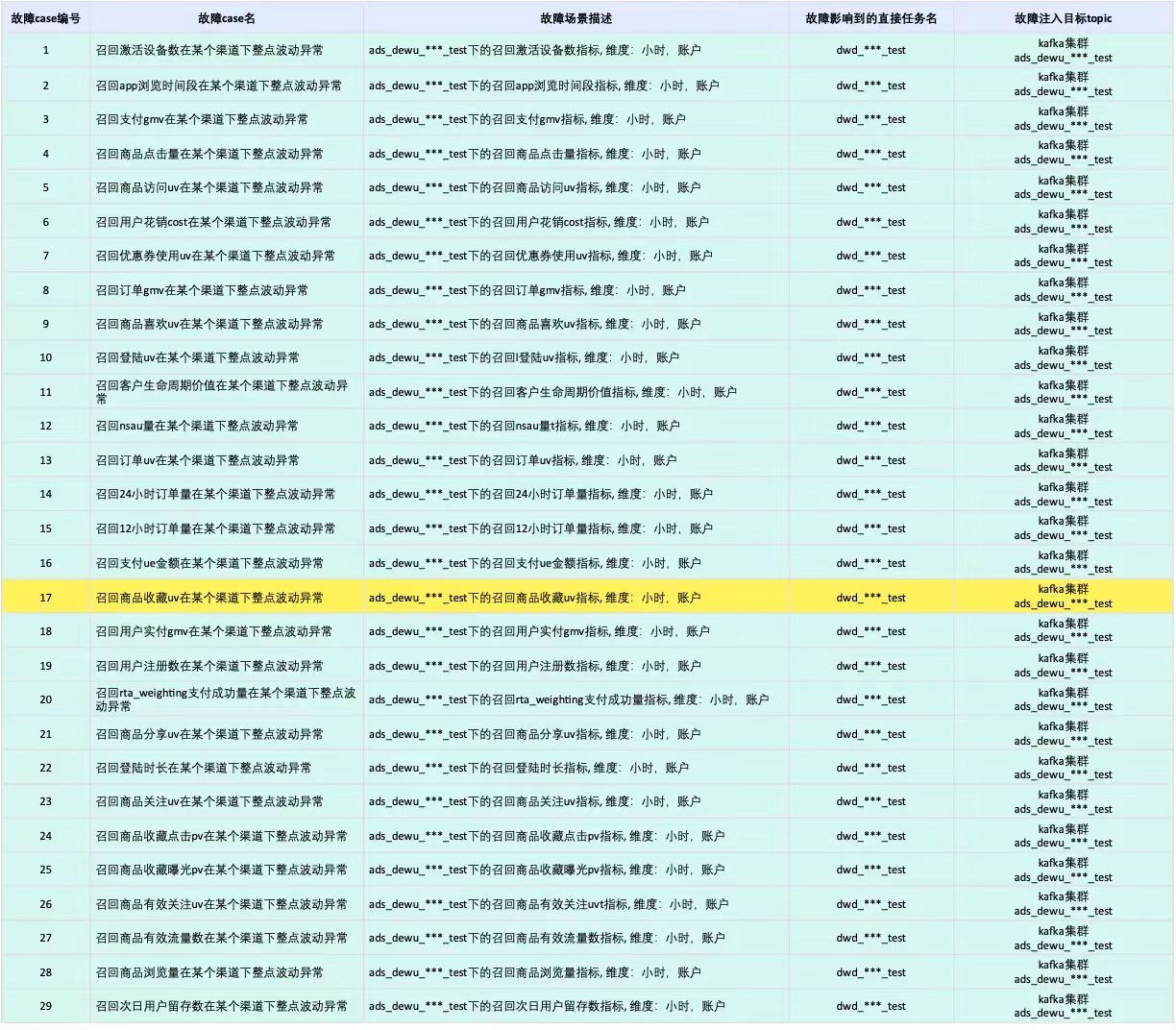本次演练共计有29个指标波动case,整体演练操作大同小异。