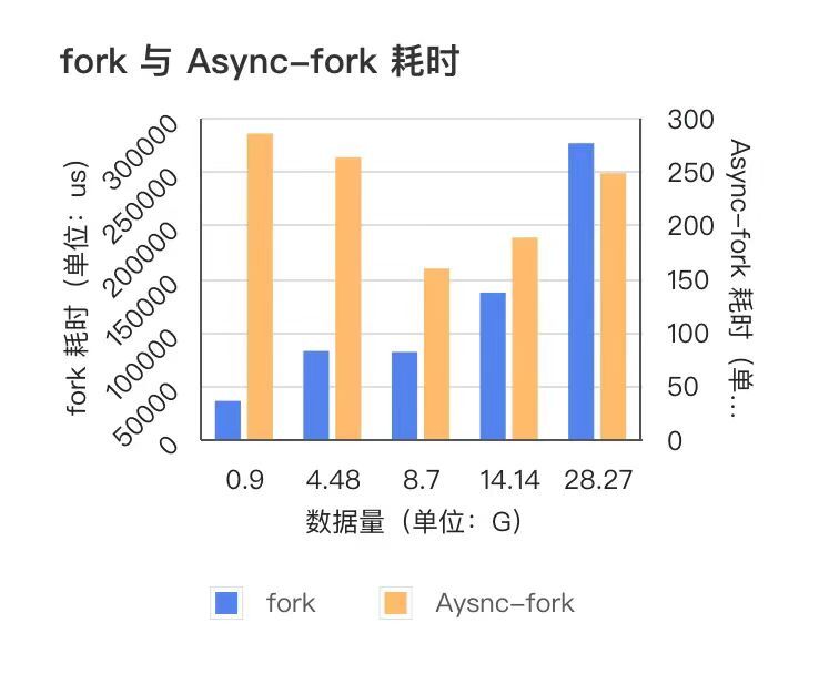 自建 Redis 系统中,Redis-Server 通过优化并适配最新的支持 Async-Fork 特性的操作系统,极大的提升 Fork 操作性能: