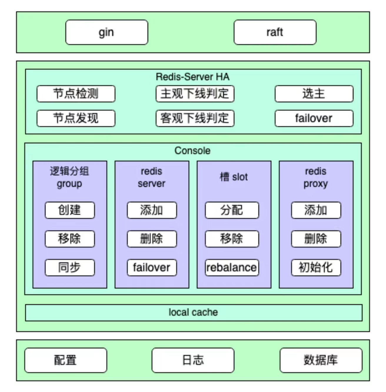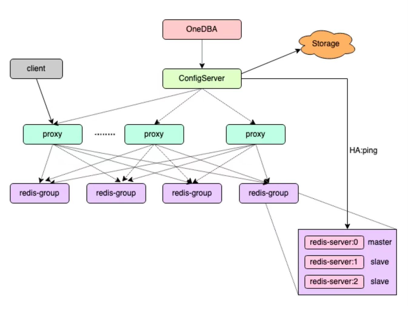 - 负责 Proxy 添加与删除、Group 创建与删除、Redis-Server 实例添加与删除、Redis-Server 实例手动主从切换、水平扩容与数据迁移等功能操作。