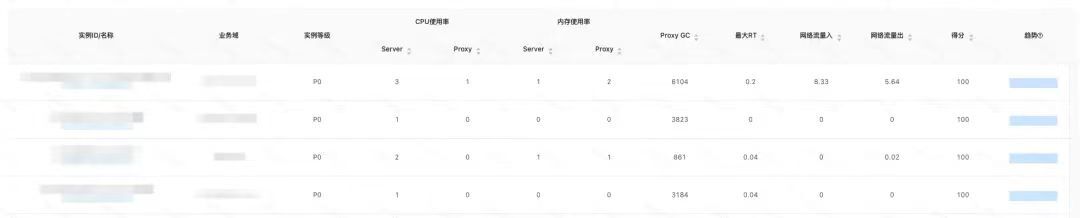 实例综合得分排名:运维平台通过分析所有实例关键监控指标前一天的峰值,再根据各项指标的权重,每天自动计算所有实例的得分,在巡检信息页面进行展示,通过得分排序即可快速发现风险实例。