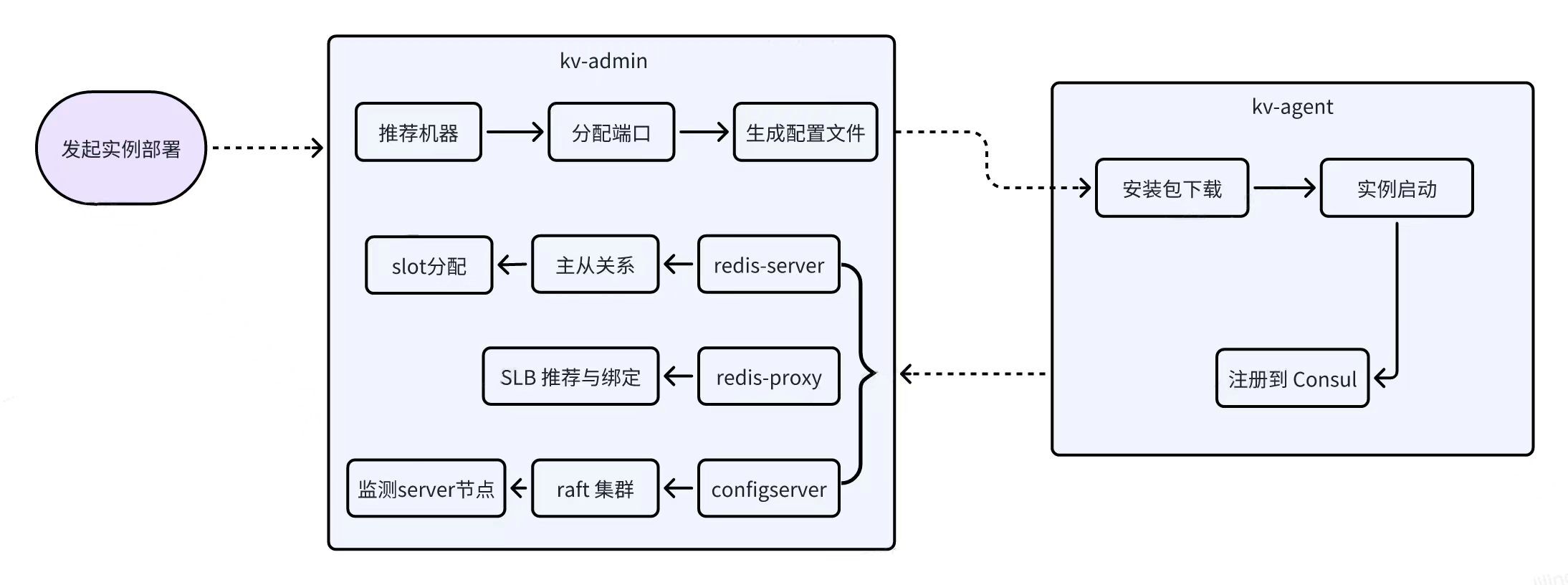 一个缓存实例的部署非常复杂,涉及机器选择、配置文件准备、节点安装与启动、槽位分配、主从关系设置、SLB 分配与绑定、以及相关组件的部署等一系列动作。