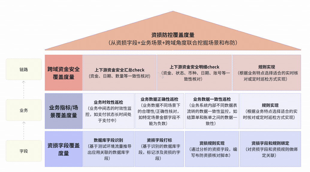 在测试前置阶段完成资损用例分析,高优资损场景在预发、生产流量发布前完成资损布防,低优场景在放量一周内完成规则实现,分析到的核对场景布防率100%。