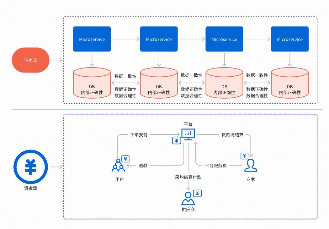 对于项目实施阶段,当承接新功能、新建系统或者分析存量系统时,如何判定是否要做资损防控,可以从两个角度出发分析:信息流或者资金流。资金流和信息流之间是相互依赖的。当业务需求中涉及资金流时,系统要实现业务需求,那么系统之间就要设计信息如何流转最终完成资金流转。当系统中存在资金字段的信息流时,可最终推导出直接或者间接的资金流。资金流通过信息流实现资金流转,信息流是资金流转的载体。所以当信息流中存储或者涉及资金交互,资金传递时,就要做资损防控,分析资损场景及如何编写资损脚本。