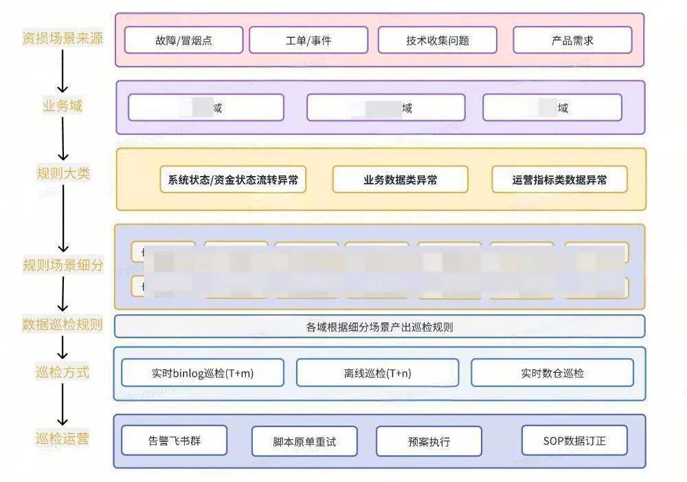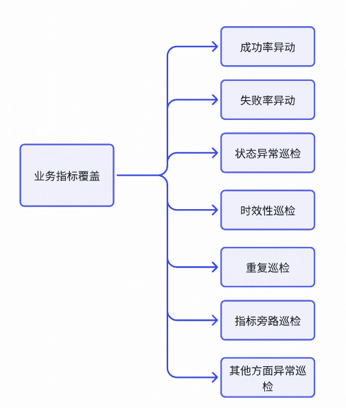 不同的业务域关注的指标不一样,但可以通过观测这些指标可以发现潜在的问题,进而避免可能产出的投诉或者扩大影响。常见的业务指标比如:时效性巡检、成功率异动巡检、失败率异动巡检、中间态异动巡检或者其他指标异常巡检。通过对这些指标的监控覆盖,可以补全数据正确但系统有问题的发现手段。一般业务指标类的覆盖时效性不高,非实时核对方式实现,可能是D+h或者离线D+1方式实现。