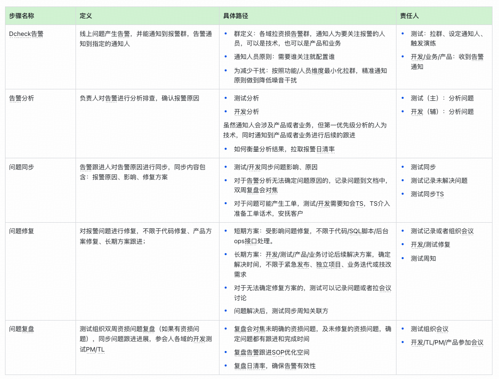 责任人:说明具体步骤对应的责任人,以及不同步骤需要知会的人,确保问题有效推进解决。