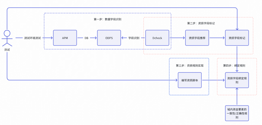 目前按照RDC“资”需求打标--->测试用例打标资损用例--->Dcheck规则实现--->用例平台绑定Dcheck规则运营流程推进。