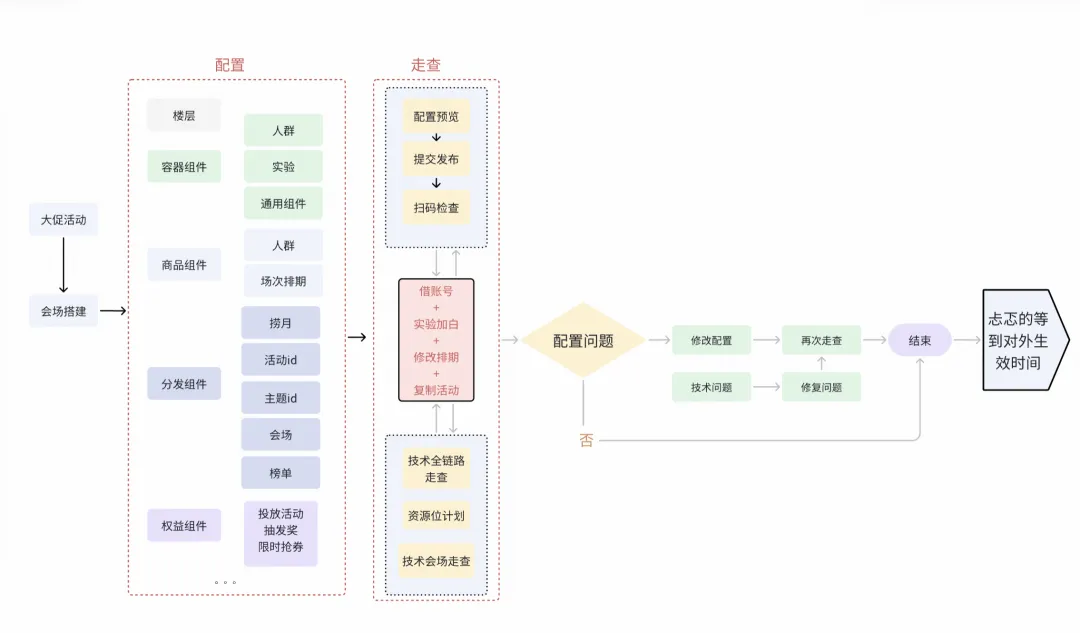 - 痛点:活动c端引流入口、重体验,对外前的配置走查费力。