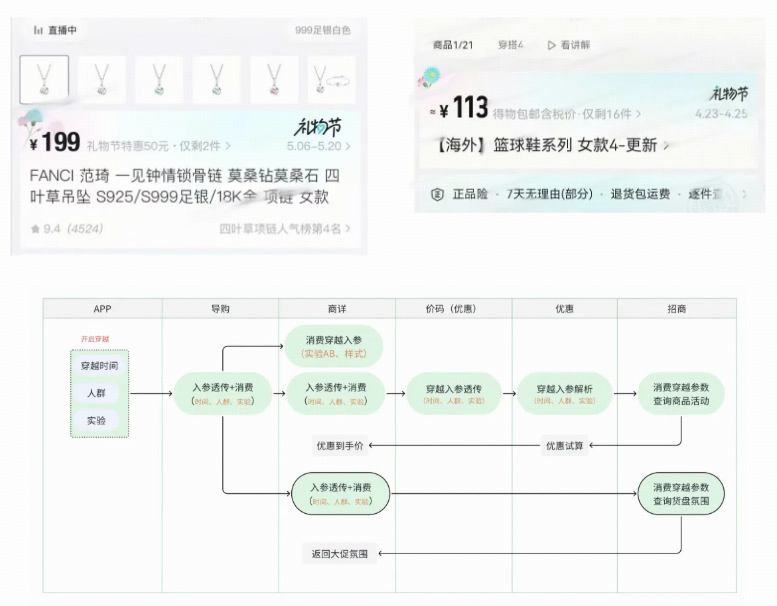 - 商详:商详价格与会场一致性、氛围、标签、导购自身商详样式实验等。
