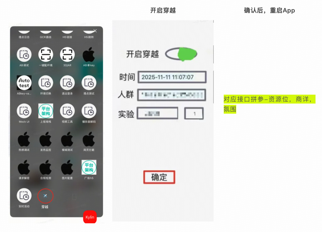 - 穿越目的是检验个业务配置正确性、素材效果、全链路验证等,供咨询查询,避免写操作:比如创单支付、核销。