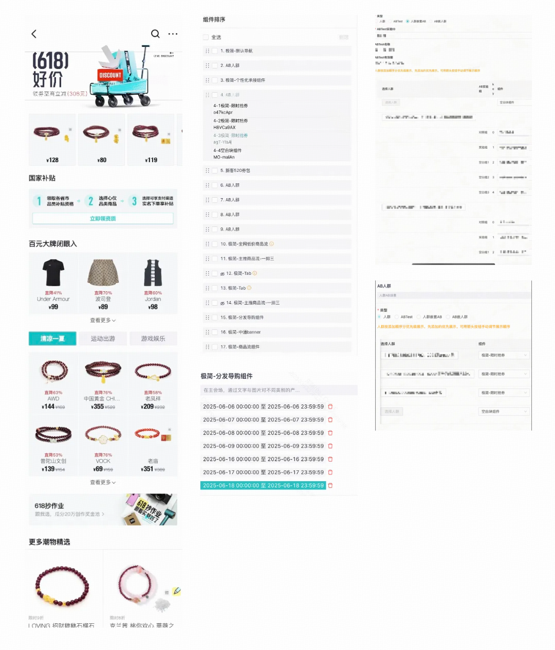 快速check不同排期下不同人群、不同实验组用户在不同时间段的活动下的商品优惠价、营销标签以页面组件呈现。