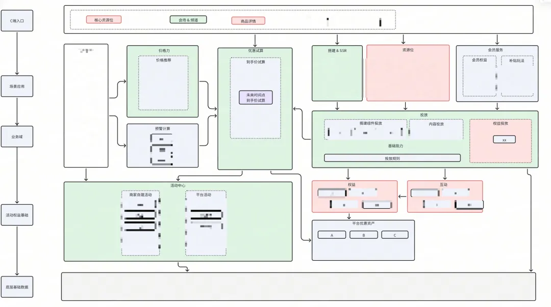 绿色部分是已经具备的基础能力,红色边框是未来规划去实现的业务线,如下方案非最终方案,基于改动范围和成本考量: