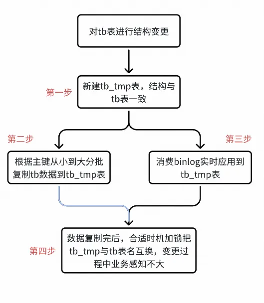 - 实现无锁化的结构变更,变更过程中不会阻挡业务对表的读写操作。