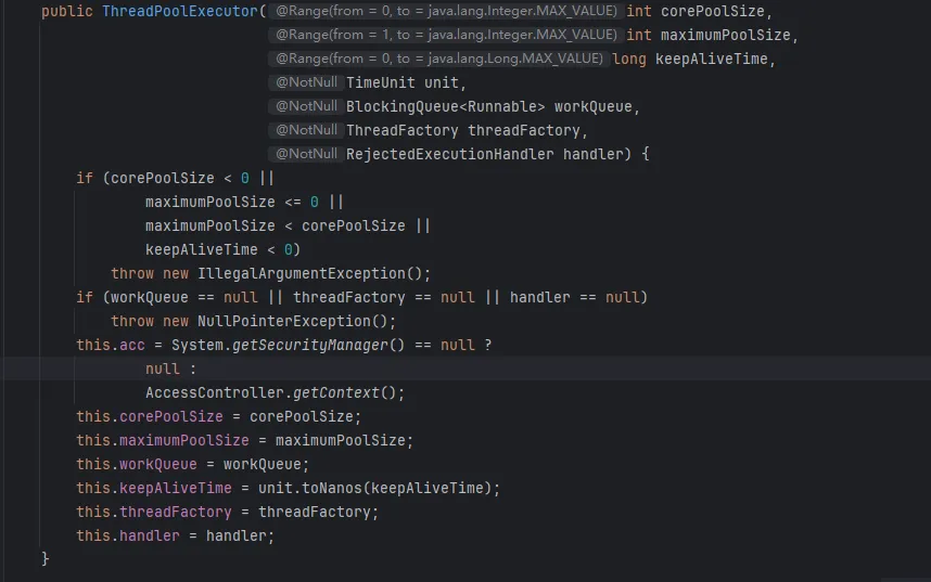 - 如果是无界队列,那么永远不会出现第二点的情况,除了内存异常,否则会一直保持核心线程数,多余的任务会一直往队列中加入。