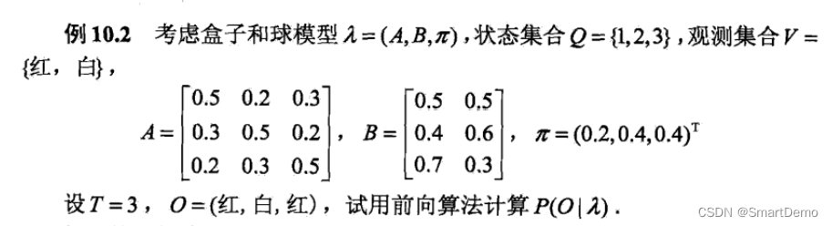 # A:状态转移概率矩阵 B:观测概率矩阵