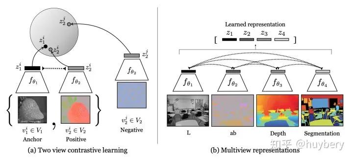 所以基于对比约束的自监督方法主要围绕如何选取正负样本, @慕容腹黑 大佬提出了利用多模态(多视角)的信息来构造样本[26] ,一个样本的多个模态为正样本,其他样本的模态为负样本。我认为这个工作还是很有启发性的,很遗憾 ICCV2019 没有中,真心希望这篇文章能够有一个好的归宿。