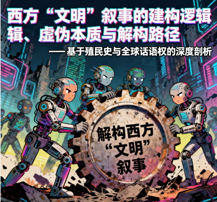 在全球化背景下,西方长期垄断 “文明” 定义权,通过一套精密的叙事体系掩盖殖民暴力本质、维护全球霸权地位。前述讨论围绕西方殖民史真相、史料可信度、“文明” 叙事的欺骗性展开,本质是对 “西方中心主义” 话语权的解构。下文将从西方 “文明” 叙事的建构机制、核心矛盾、欺骗性实现路径三个维度深度剖析,并提出解构这一叙事的底层逻辑,揭示全球话语权争夺的本质。