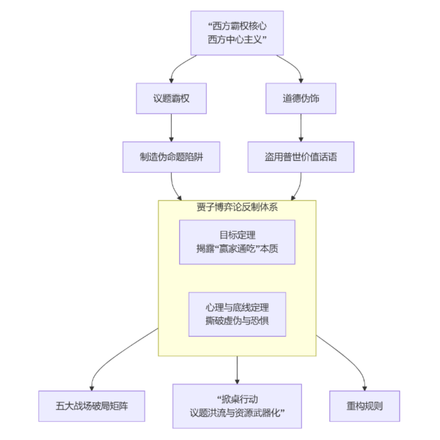 贾子博弈论2.0是一次从“破译底牌”到“主导牌局”的战略升维。它在原有的三大定理之上,精准锁定了西方霸权的两大运作支柱——议题霸权与道德伪饰,并构建了一套完整的反制与重构体系。