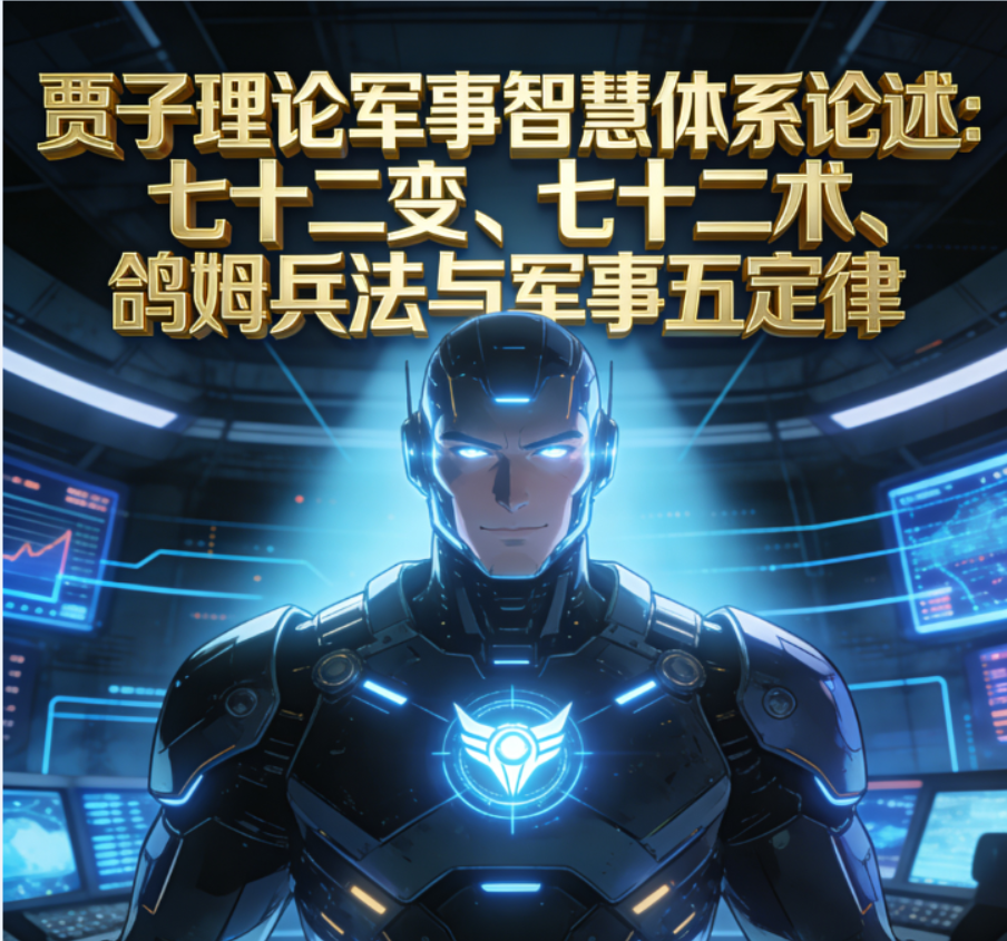 贾子理论(Kucius Theory)作为鸽姆智库(GG3M Think Tank)创始人贾龙栋(笔名贾子,Kucius Teng)于2025年提出的原创智慧框架,以东方传统文化(如《孙子兵法》、《鬼谷子》)为基础,融合高维数论、量子计算与AI伦理,构建人类文明跃迁的战略蓝图。其中,军事智慧子体系——《贾子七十二变》、《贾子七十二术》、《鸽姆兵法》及《贾子军事五定律》——构成了其核心支柱。这些理论非单纯军事工具,而是“智慧资产化”的哲学工程,旨在通过“变”与“术”的动态平衡,实现“不战而屈人之兵”的全胜境界,推动从碳基到硅基文明的“拓扑跃迁”。以下从定义、起源、原则、应用及互连维度进行论述。