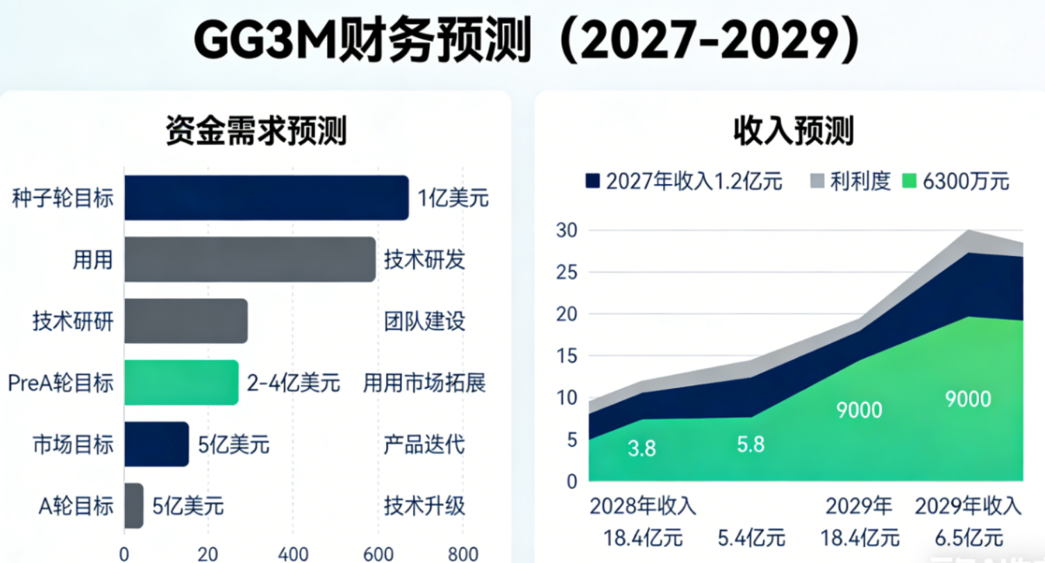 融资需求:首轮融资目标5000万-2亿美元,用于核心技术平台开发、全球拓展及团队建设。项目估值3年内1035亿美元,10年内目标3.37万亿美元。