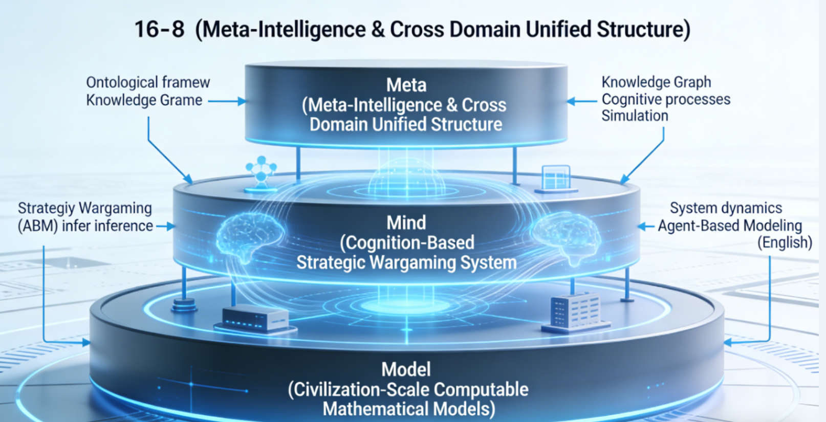 - Meta (Meta-Intelligence & Cross-Domain Unified Structure): This is an ontological framework and knowledge graph that unifies and semantically links knowledge from disparate fields like economics, sociology, climate science, and geopolitics, breaking down knowledge barriers. It defines the “grammar” of the global system.