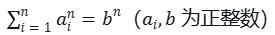 - 定义:对于整数 n≥5n≥5,方程 ∑i=1nain=bn∑i=1nain=bn(ai,b∈Nai,b∈N) 不存在正整数解。