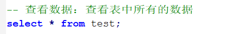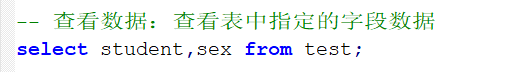 - 查看表中指定字段的数据:select 字段1,……,字段2,from 表名