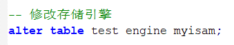 - 修改存储引擎:[alter table 表明 engine 引擎]