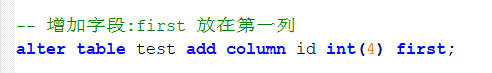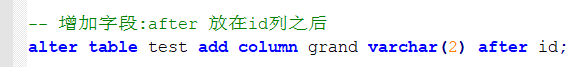 - 新增字段:[alter tabel 表明 add column 列 列属性 位置]
