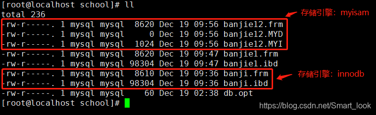 - .frm文件:保存了每个表的元数据,包括表结构的定义