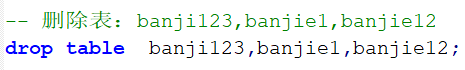 - 格式: drop table 表明1,表明2 …… ; -- 可以一次删除多张表格,用逗号隔开