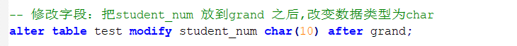 - 格式:alter table 表名 modify 字段名 数据类型 [属性] [位置]