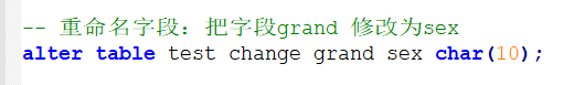 - 格式:alter table 表明 change 旧字段 新字段名 数据 类型 [属性] [位置]